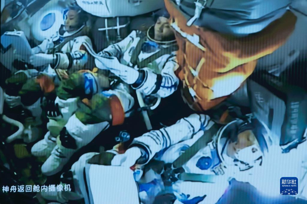 10月26日在北京航天飛行控制中心拍攝的神舟十七號乘組。