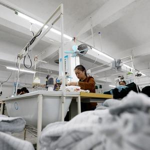 10月25日,村民在資興市州門(mén)司鎮州門(mén)司村就業(yè)幫扶車(chē)間加工服裝。
