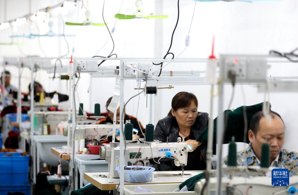 10月25日,村民在資興市州門(mén)司鎮州門(mén)司村就業(yè)幫扶車(chē)間加工服裝。