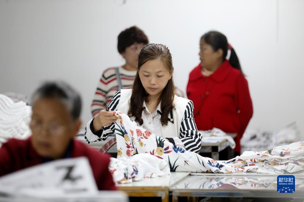 10月25日,村民在資興市州門(mén)司鎮州門(mén)司村就業(yè)幫扶車(chē)間加工服裝。