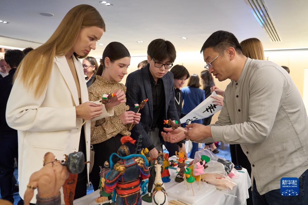10月26日,在俄羅斯符拉迪沃斯托克,來(lái)自吉林省的手工藝人白春雨(右一)向觀(guān)眾展示面塑作品。