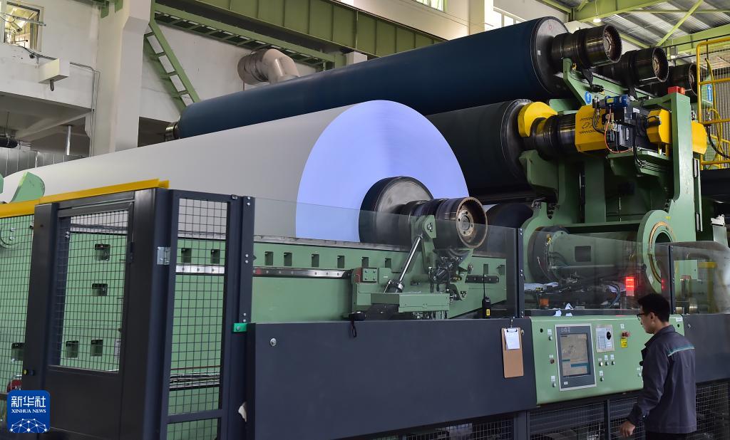 10月25日,工作人員在亞太森博(山東)漿紙有限公司紙生產(chǎn)線(xiàn)上值守。