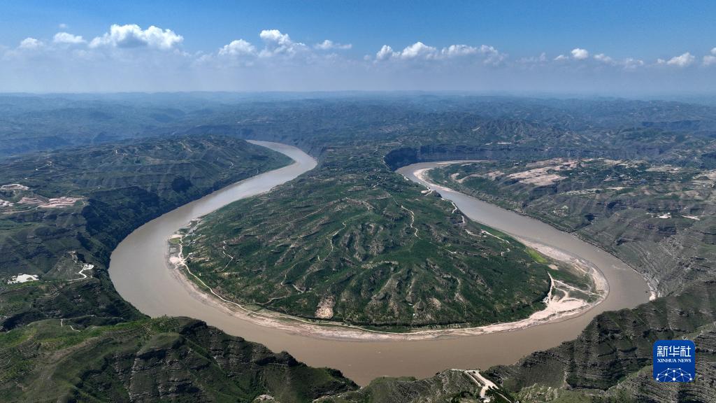 2023年8月3日在山西省石樓縣辛關(guān)鎮拍攝的黃河奇灣(無(wú)人機照片)。