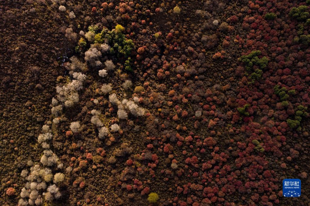 這是10月26日在青海省西寧市湟中區群加國家森林公園拍攝的秋日景色(無(wú)人機照片)。
