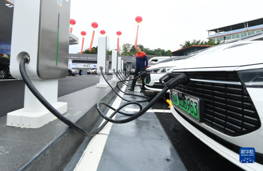 10月27日,新能源汽車(chē)在福州市倉山區齊安路的齊安智檢超充站充電。