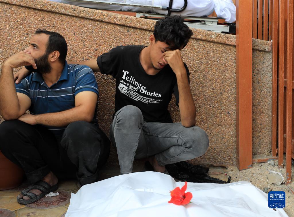 10月27日,在加沙地帶南部城市汗尤尼斯的一家醫療中心,人們?yōu)橛鲭y親人哀悼。