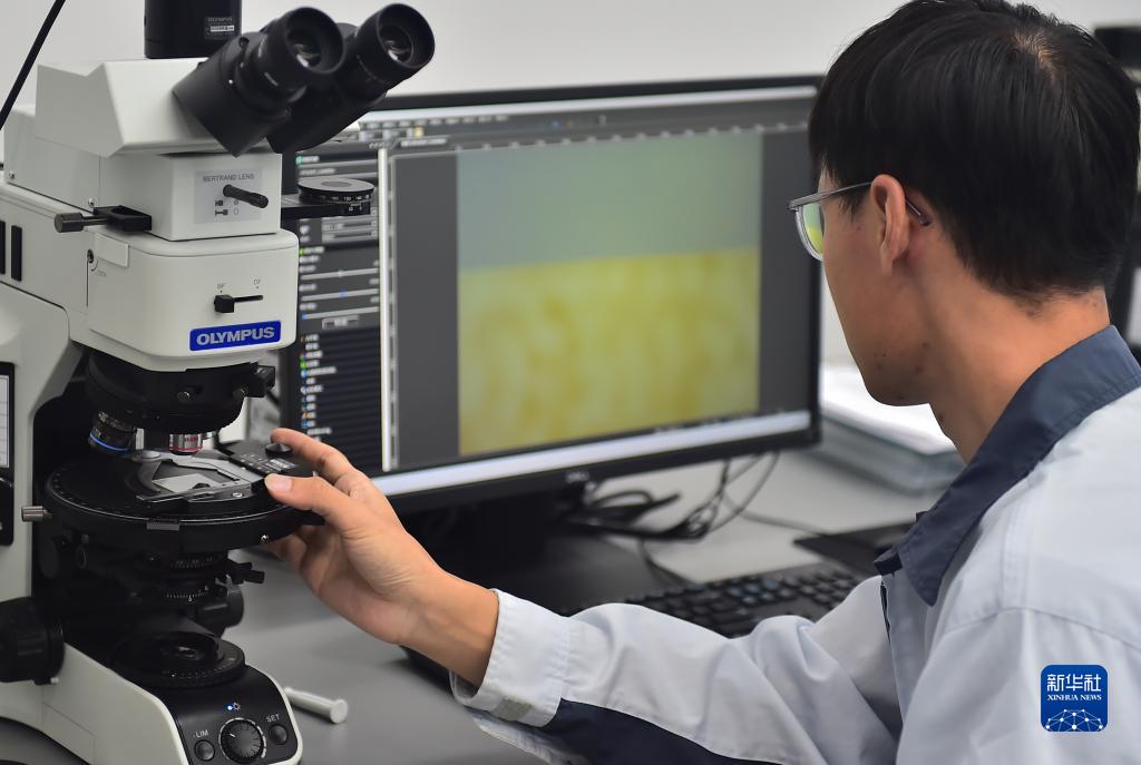 10月27日,技術(shù)人員在位于山東省聊城市陽(yáng)谷縣的波米科技有限公司實(shí)驗室工作。