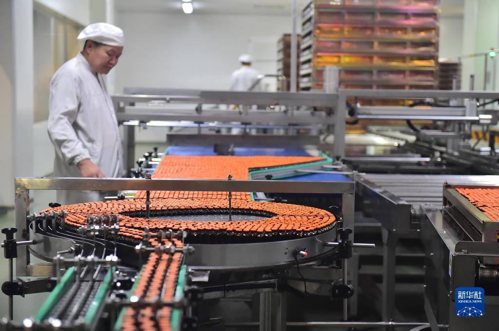 10月27日,工人在山東省聊城市東阿縣東阿阿膠股份有限公司阿膠世界體驗工廠(chǎng)阿膠漿生產(chǎn)線(xiàn)上值守。