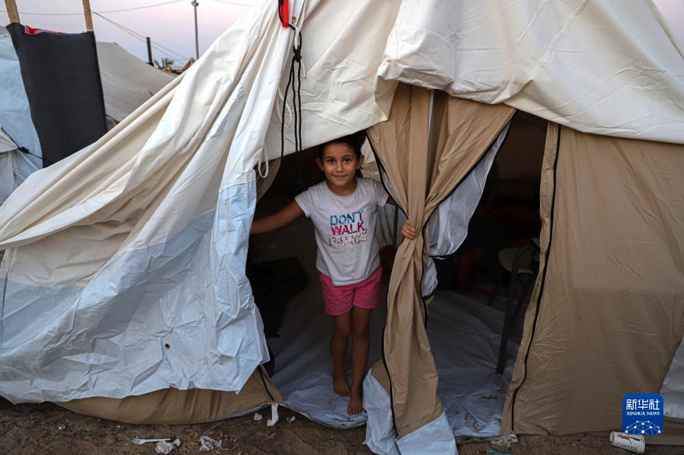 這是10月25日在加沙地帶南部一處臨時(shí)營(yíng)地內拍攝的巴勒斯坦兒童。