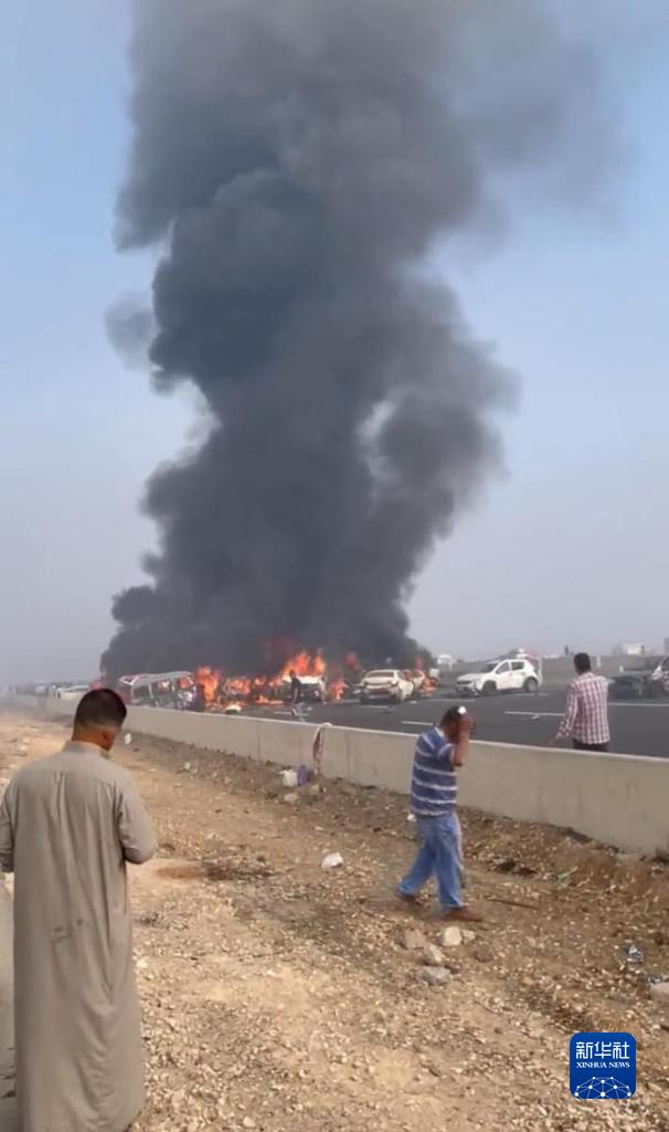 這張來(lái)自社交媒體的照片顯示的是10月28日埃及布海拉省的多車(chē)相撞事故現場(chǎng)。