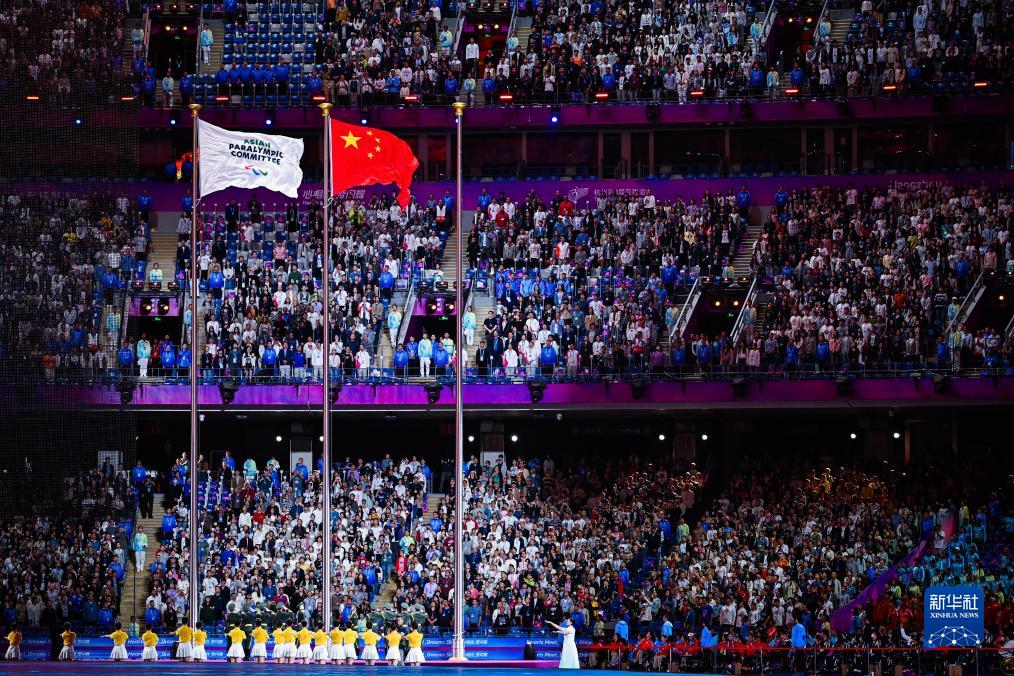 10月28日,亞殘奧委員會(huì )會(huì )旗和中華人民共和國國旗在閉幕式上升起。