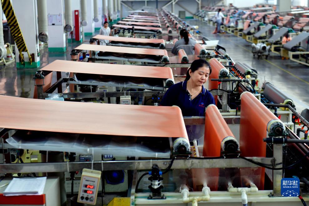 10月29日,在山東勁拓新材料科技有限公司,工作人員在導電布生產(chǎn)設備前值守。