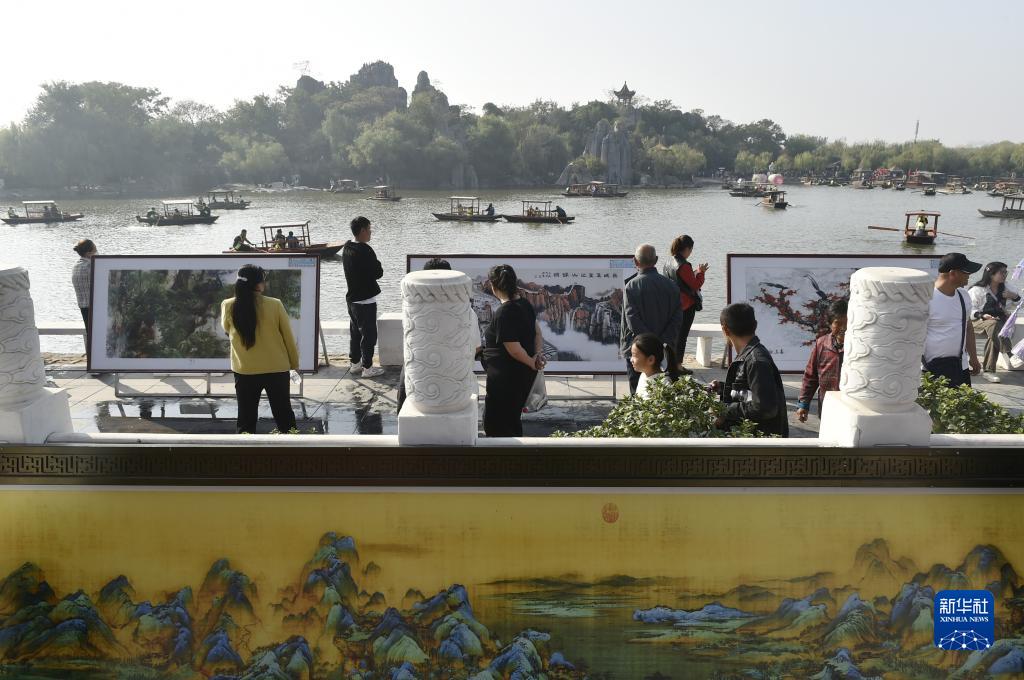 10月29日,游人在開(kāi)封市中國翰園碑林景區游園。
