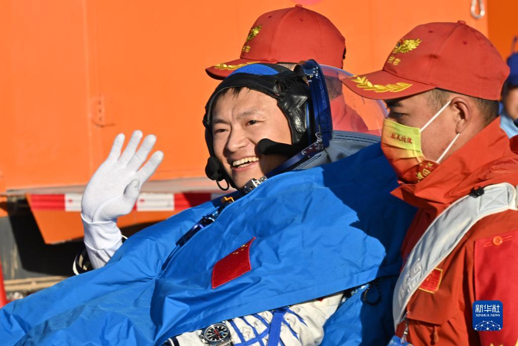 10月31日,神舟十六號載人飛船返回艙在東風(fēng)著(zhù)陸場(chǎng)成功著(zhù)陸。這是航天員桂海潮安全順利出艙。