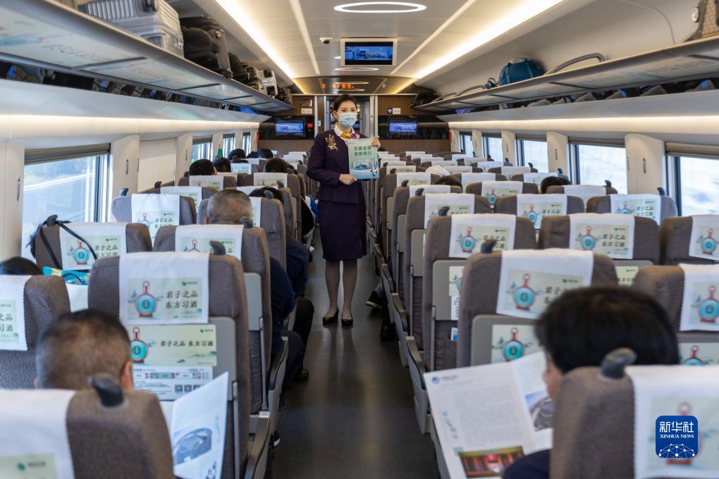 10月31日,乘務(wù)員向旅客介紹進(jìn)博會(huì )亮點(diǎn)。