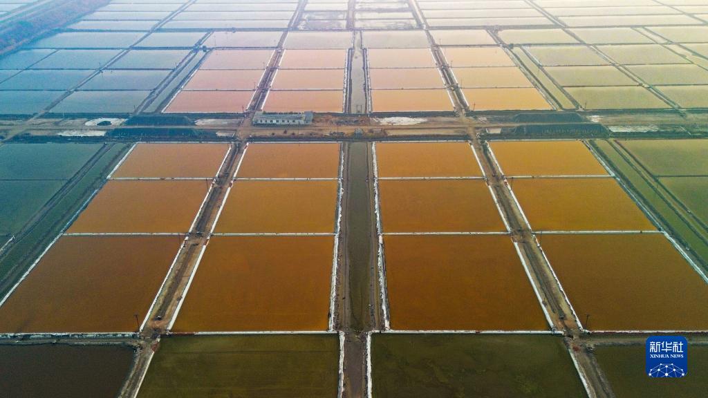 10月31日拍攝的遼寧省營(yíng)口市老邊區的鹽田(無(wú)人機照片)。