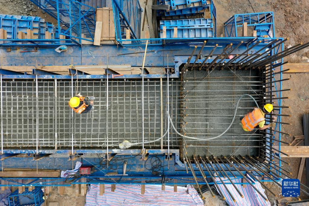 11月1日,正在進(jìn)行橋墩施工的老猴沖大橋(無(wú)人機照片)。
