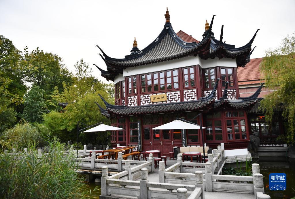 這是9月28日拍攝的德國漢堡豫園湖心亭。