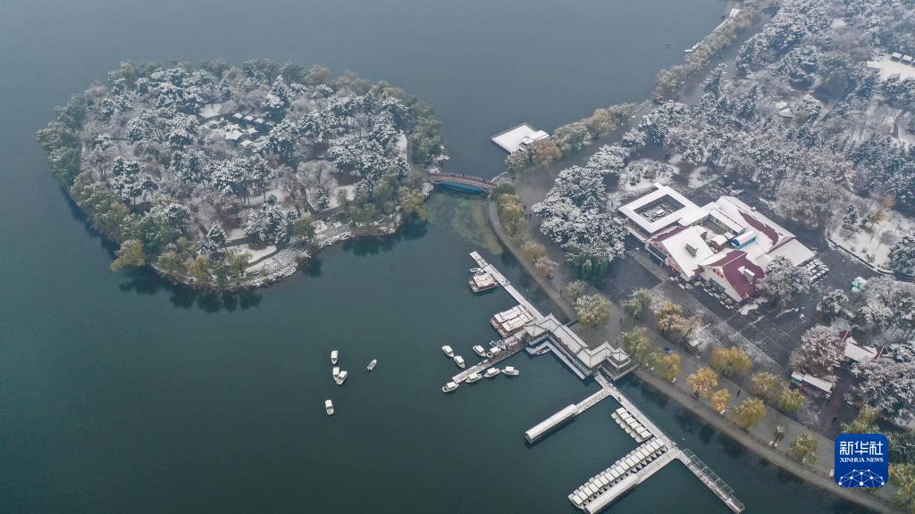 11月1日拍攝的長(cháng)春市南湖公園雪景(無(wú)人機照片)。
