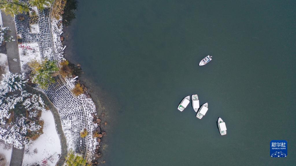 11月1日拍攝的長(cháng)春市南湖公園雪景(無(wú)人機照片)。
