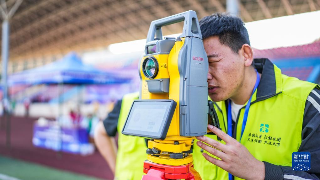 11月1日,選手參加施工放樣項目比賽。