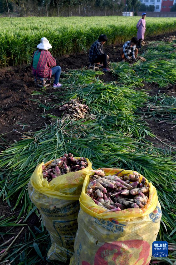 10月31日,河南省博愛(ài)縣鴻昌街道的農民在收獲懷姜。