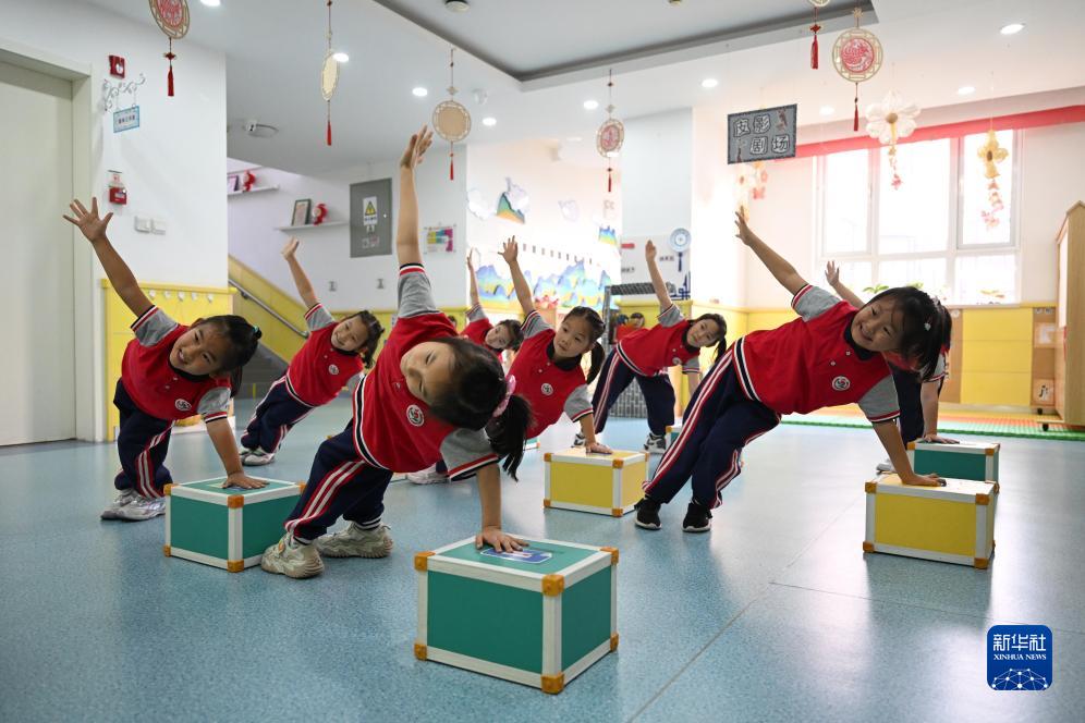 11月1日,天津市和平區第五幼兒園的小朋友在室內進(jìn)行體育鍛煉。