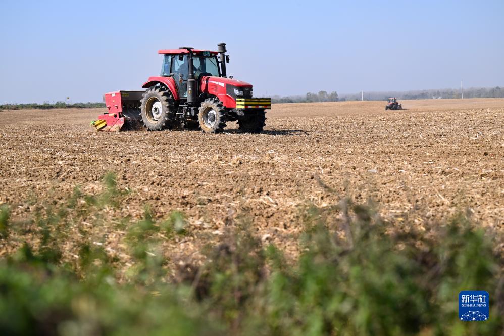 11月2日,在合肥市蜀山區小廟鎮,農民駕駛農機在田間播種小麥。