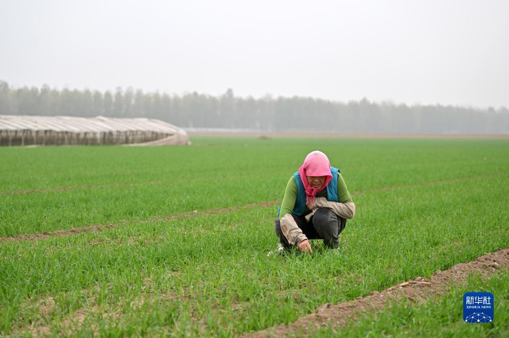 11月2日,在天津市西青區辛口鎮當城村,農戶(hù)在查看冬小麥的生長(cháng)情況。