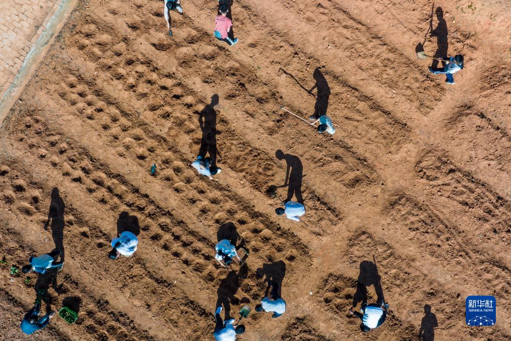 11月2日,在黃梅縣停前鎮中學(xué),學(xué)生在種植園內上勞動(dòng)課(無(wú)人機照片)。