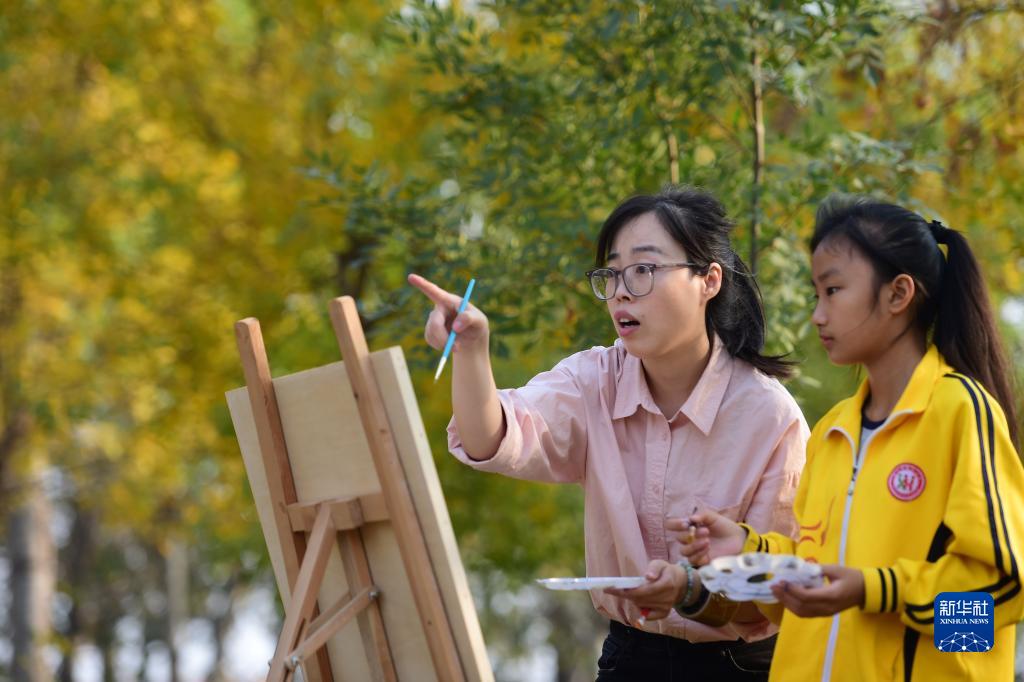 深秋時(shí)節,河北省鹽山縣新華小學(xué)把課堂搬到大自然,開(kāi)展“尋美秋天”為主題的戶(hù)外繪畫(huà)活動(dòng),孩子們用手中的畫(huà)筆感受秋天,記錄秋天的美麗。