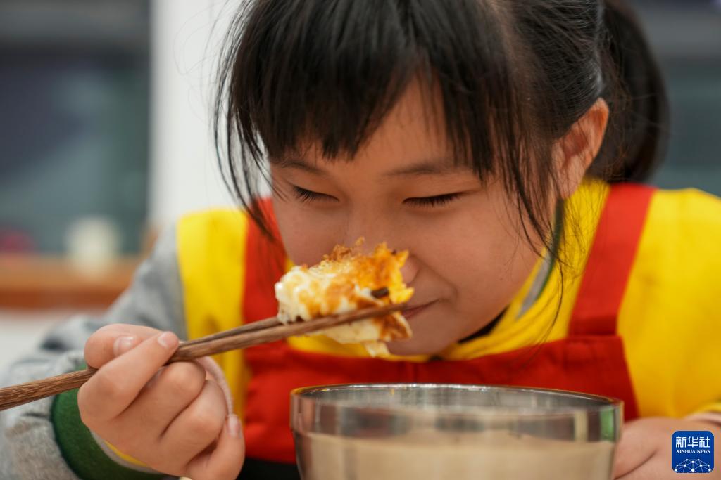 10月30日,在重慶市特殊教育中心的勞動(dòng)課教室內,一名三年級的視力障礙學(xué)生夾起自己煎好的雞蛋。