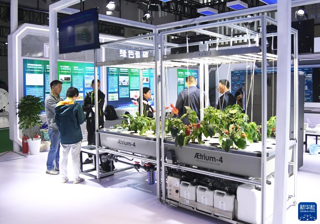 這是11月2日在世界農業(yè)科技博覽會(huì )現場(chǎng)拍攝的基于物聯(lián)網(wǎng)的智能化植物工廠(chǎng)。