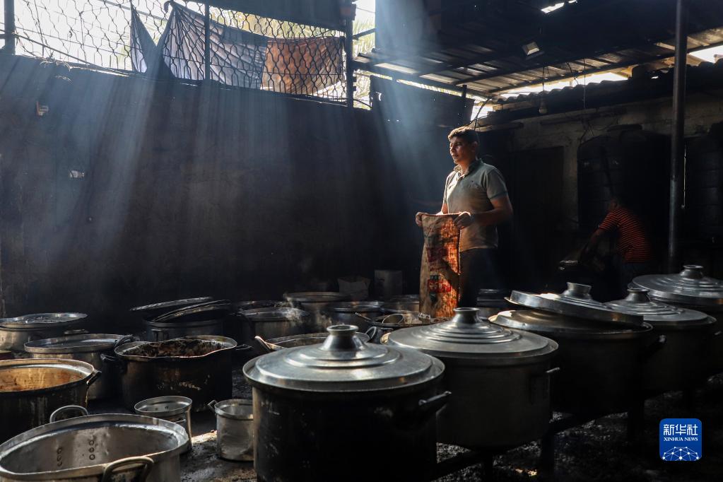 11月3日,在加沙地帶南部城市拉法,人們在煤氣中斷后用柴火做飯。