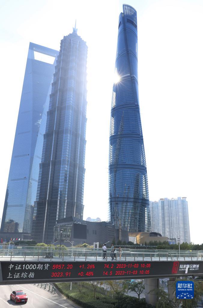 11月3日,市民和游客行走在上海陸家嘴天橋。