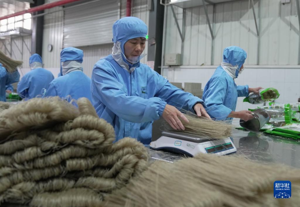 11月4日,工人在河北省盧龍縣一家甘薯深加工企業(yè)的粉條生產(chǎn)車(chē)間工作。