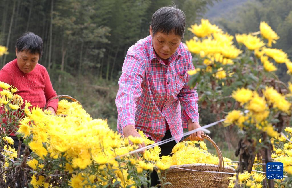 11月4日,村民在岳林村皇菊種植基地采摘皇菊。