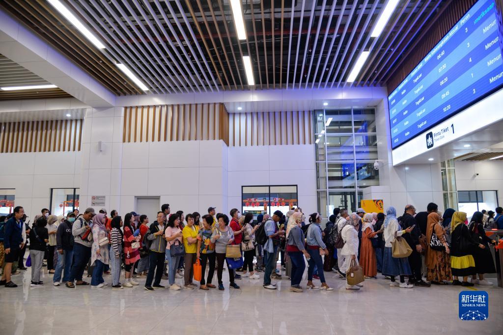 11月5日早,在印度尼西亞雅加達哈利姆站候車(chē)大廳,人們排隊準備前往站臺乘坐當日第一班高鐵。