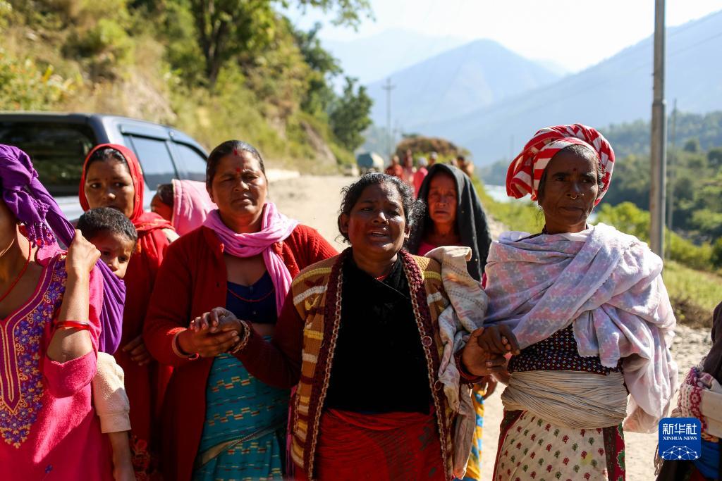11月5日,在尼泊爾魯古姆西區,人們因親人的離去悲痛不已。