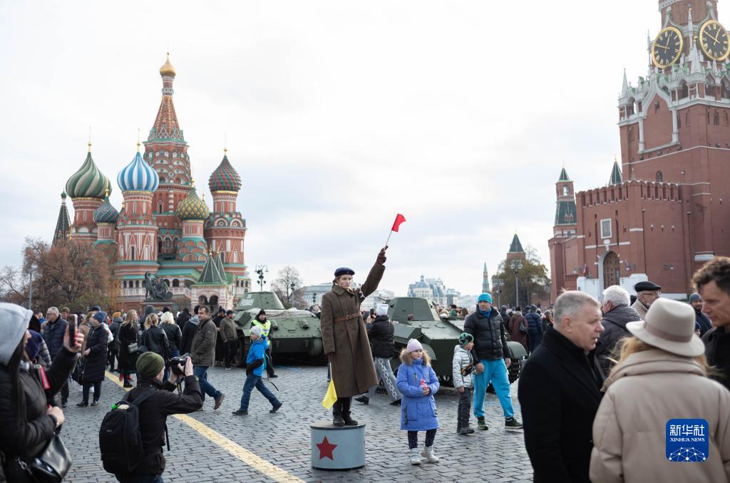 11月5日,在俄羅斯首都莫斯科,人們參觀(guān)以紀念1941年蘇聯(lián)紅場(chǎng)閱兵式為主題的露天展覽。