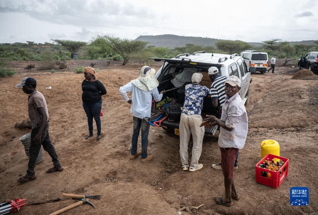 11月3日,中肯聯(lián)合考古隊隊員在位于肯尼亞巴林戈郡馬里加特鎮的考古現場(chǎng)整理工具。