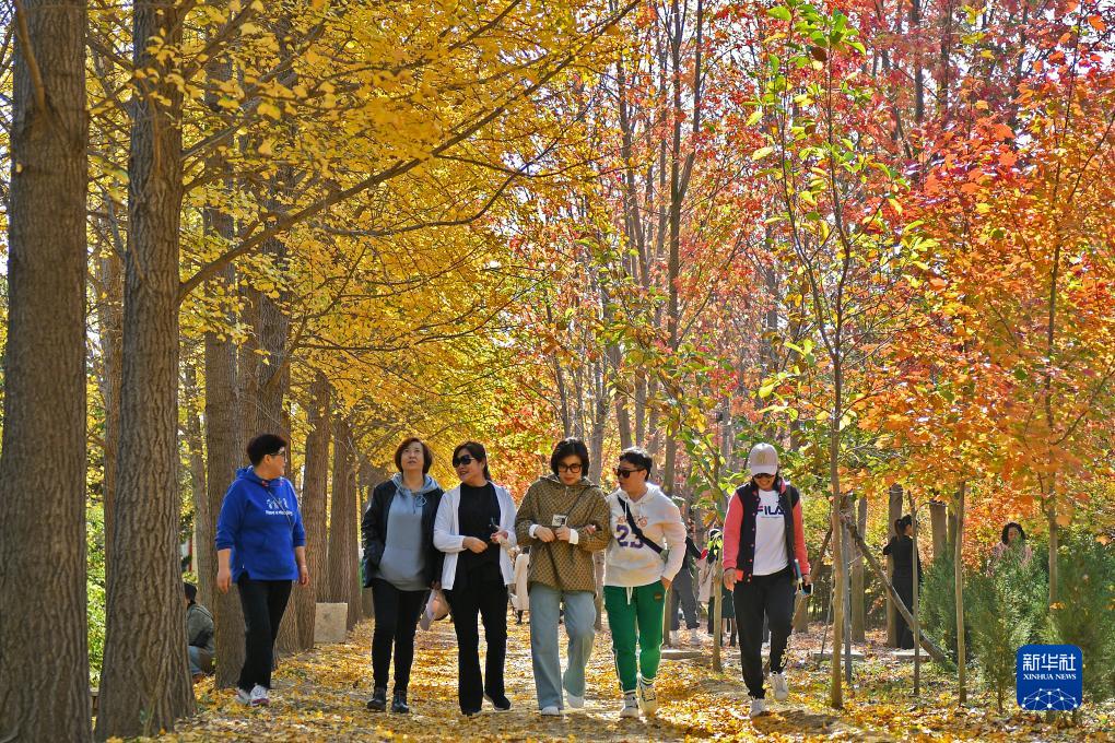 11月4日,在山東省煙臺市福山區東廳街道,游客在大自然園林觀(guān)賞秋景。