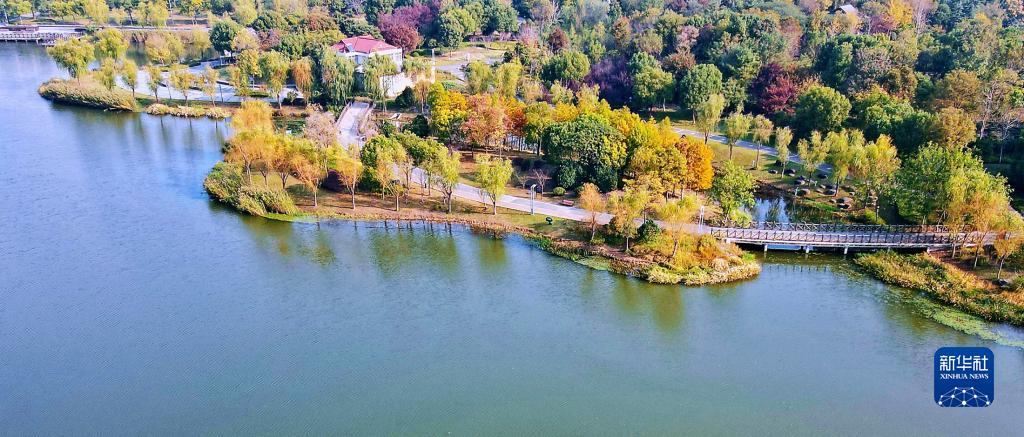 這是11月5日在江蘇省如皋市龍游河生態(tài)公園拍攝的秋景(無(wú)人機照片)。