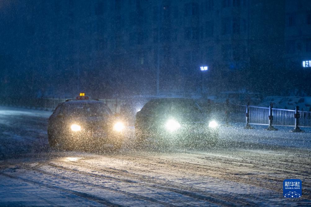 11月6日,在哈爾濱市香坊區,車(chē)輛在雪中行駛。