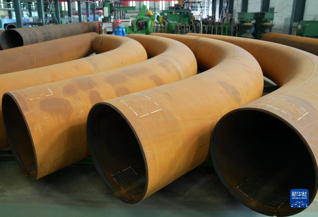 11月5日,工人在秦皇島經(jīng)濟技術(shù)開(kāi)發(fā)區中石油寶世順(秦皇島)鋼管有限公司彎管生產(chǎn)車(chē)間工作。