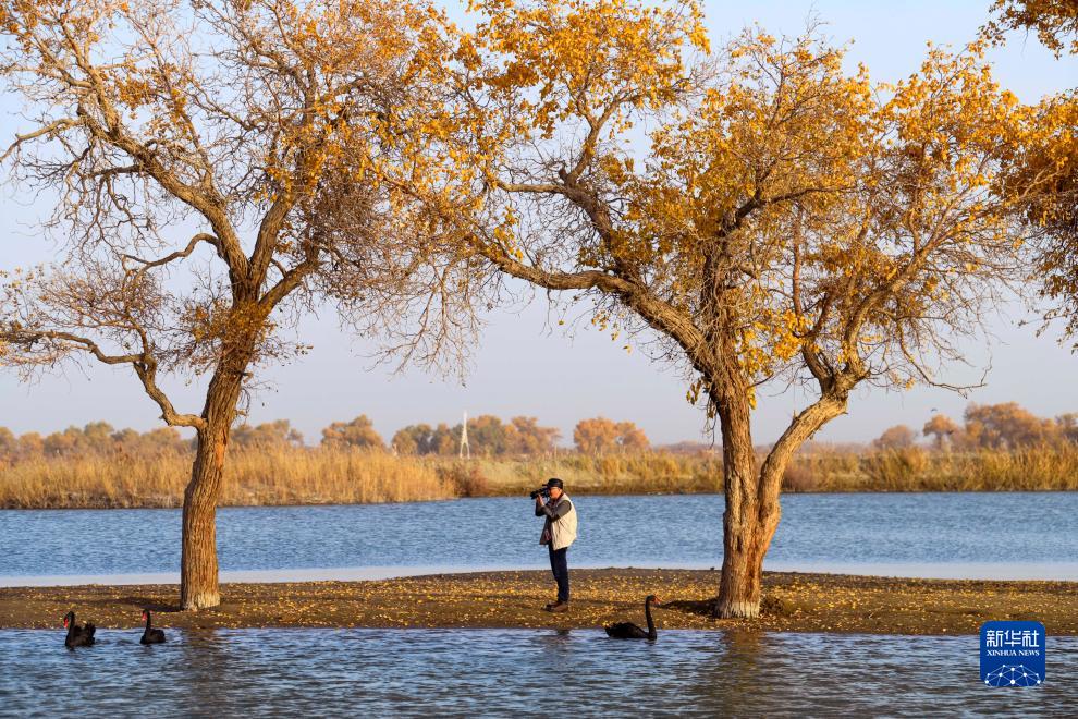 在新疆尉犁縣羅布人村寨景區,一名攝影愛(ài)好者在拍攝美景(11月3日攝)。