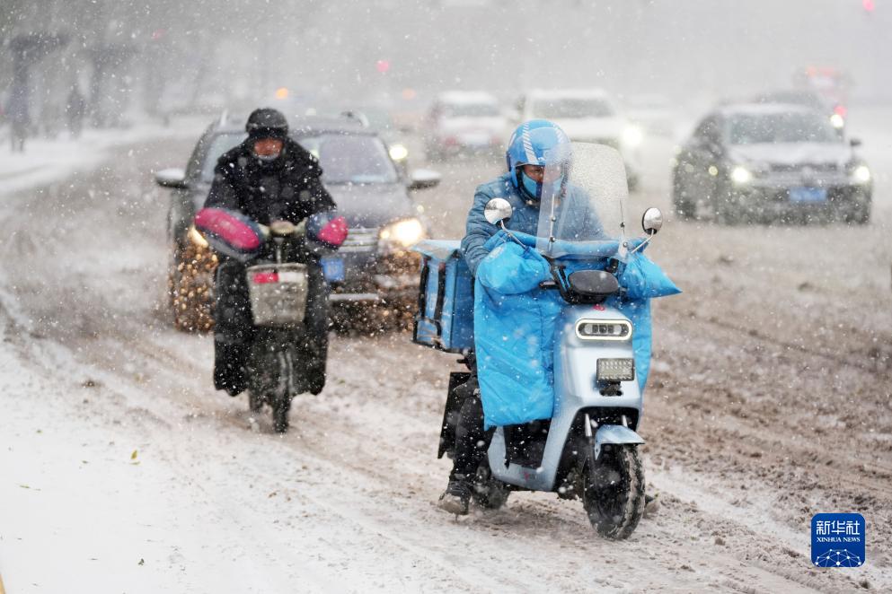 11月6日,哈爾濱市民在風(fēng)雪中騎車(chē)出行。