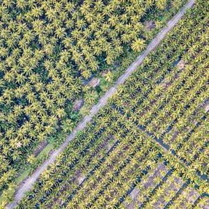 這是11月3日在泰國叻武里府丹嫩沙多拍攝的椰子園(無(wú)人機照片)。