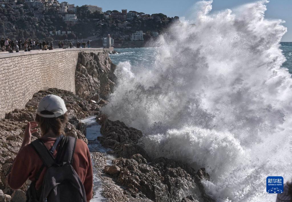 近日,受風(fēng)暴天氣影響,法國尼斯海岸巨浪拍岸,吸引人們駐足觀(guān)看。
