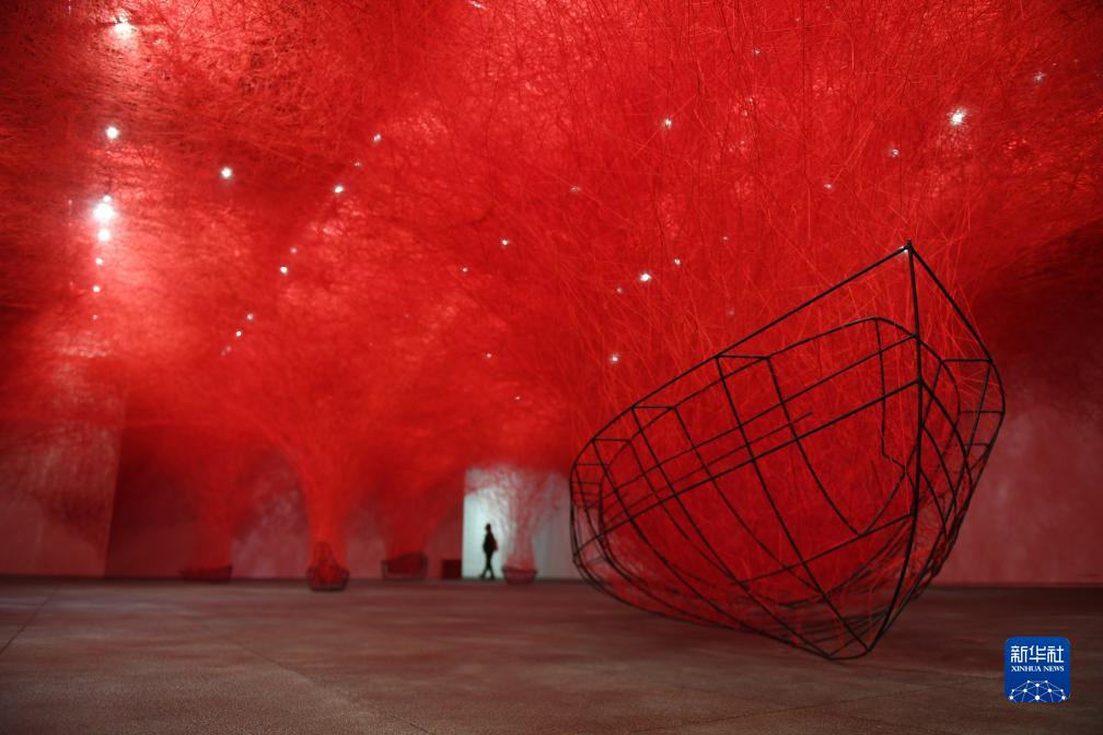 11月6日,參觀(guān)者在深圳美術(shù)館(新館)的“鹽田千春:顫動(dòng)的靈魂”展覽上觀(guān)賞藝術(shù)家鹽田千春的藝術(shù)作品。